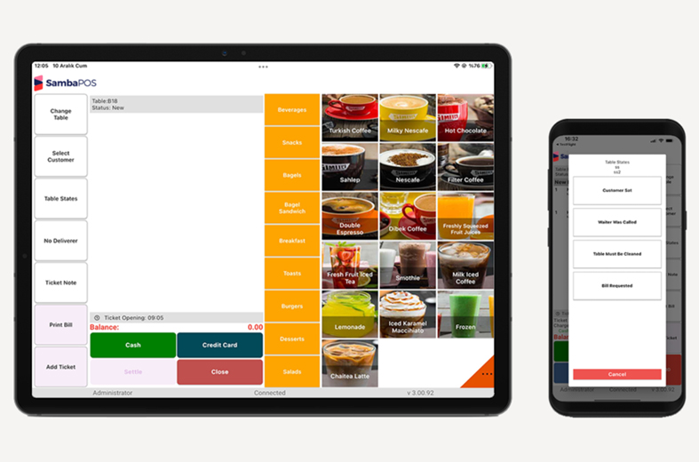 SambaPOS is a cutting-edge restaurant point-of-sale system built to deliver a seamless and efficient experience for both staff and customers.